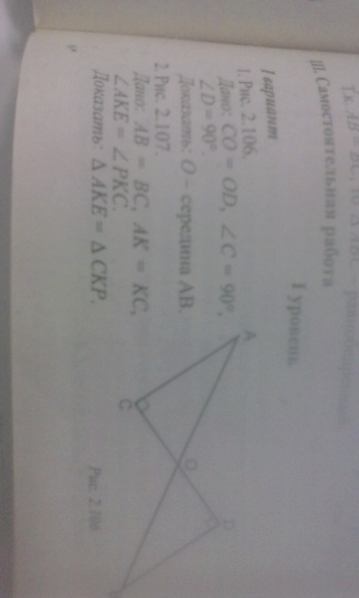 1.углы соа и вод вертикальные, следовательно, они равны. со=од и углы с и д равны (они по 90°). по двум прилежащим углам и строне треугольники равны. значит равны ао и об. из этого следует, что о - середина ав.