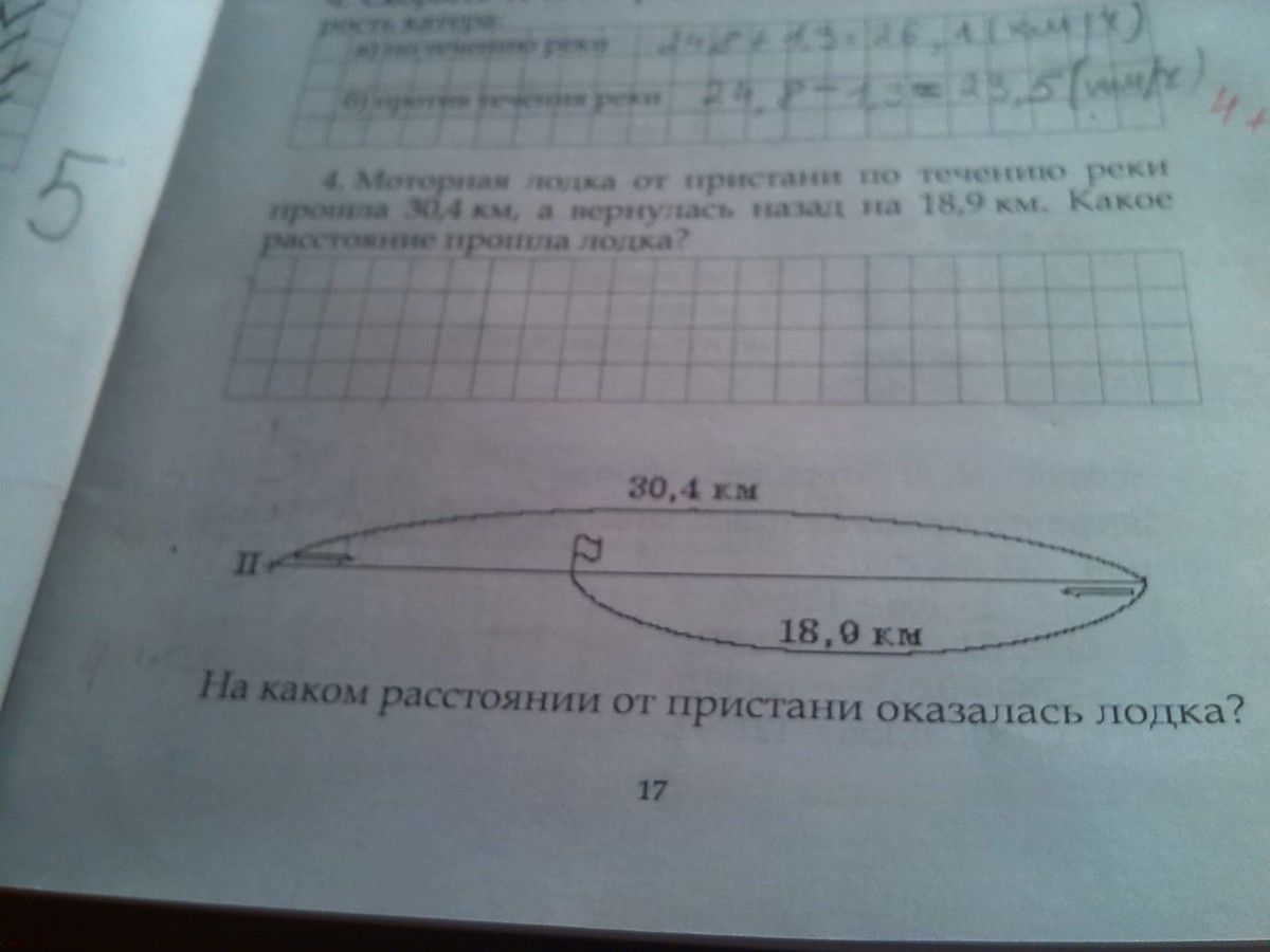 1) 30,4+18,9=49,3 км - всего прошла лодка