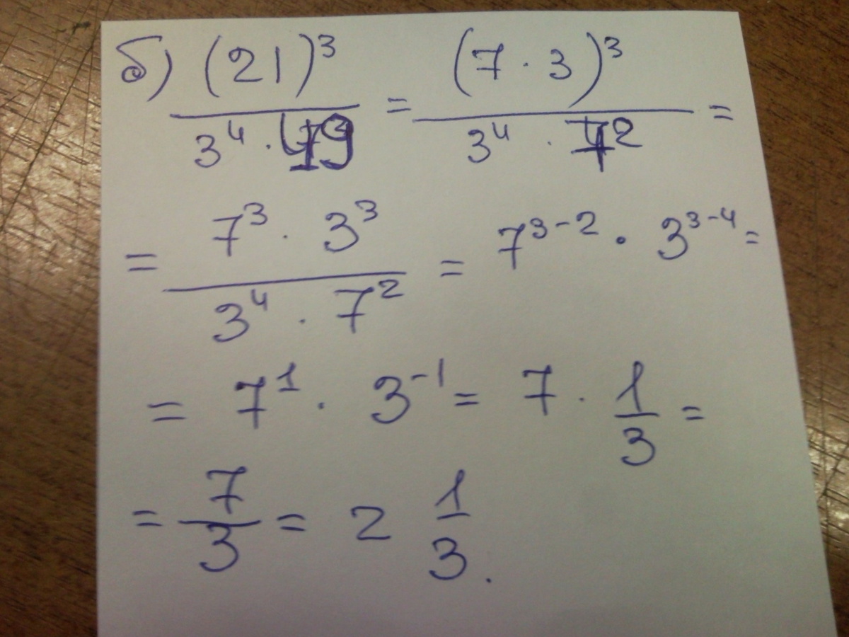 б)21^3/(3^4*49) = (3*7)^3/(3^4 *7^2) = (3^3*7^3)/(3^4 * 7^2)= 7/3= 2 целых 1/3