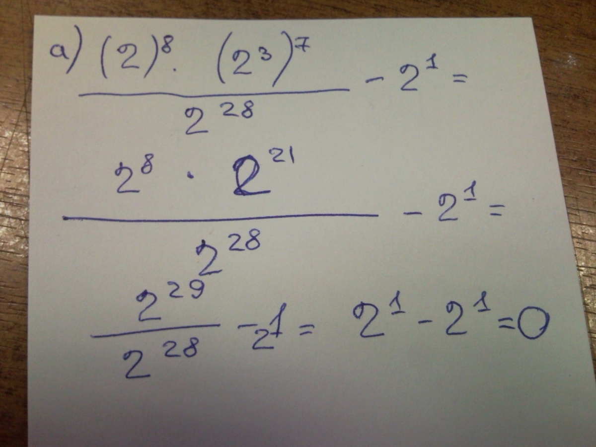 а)(2^8 *(2^3)^7)/2^28 - 2 = 2^29/2^28 -2= 2 - 2=0
