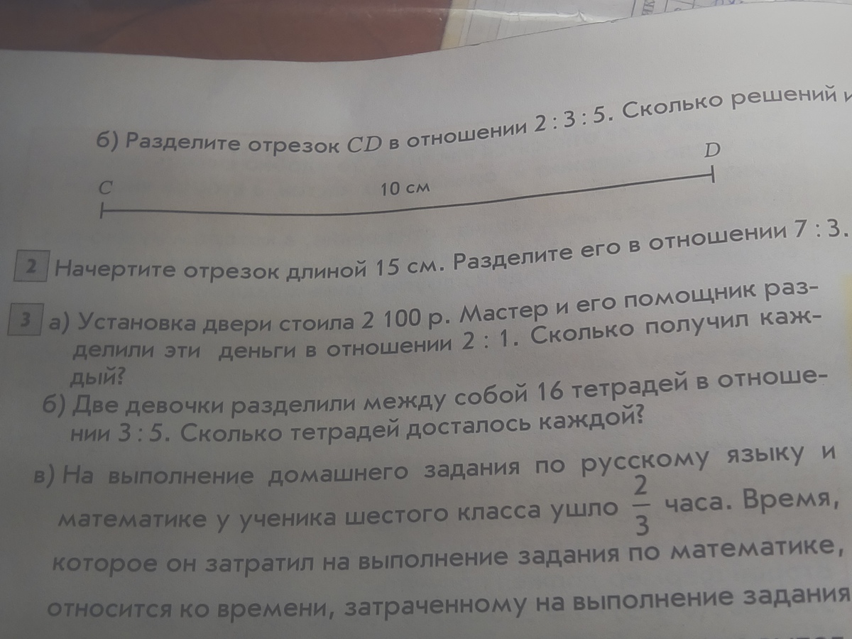 всего 10 частей, 15см/10=1,5см; 7ч=1,5*7=10,5см; 3ч=1,5*3=4,5см