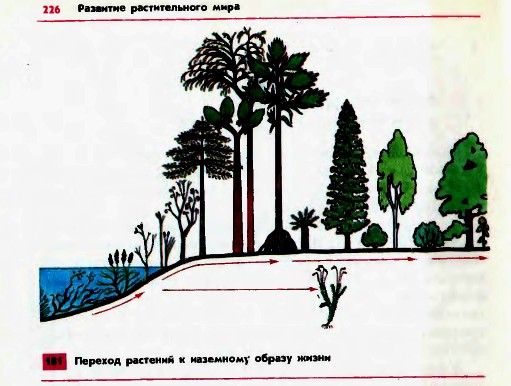 Рассмотрите рисунок <<Основные этапы развития растительного мира». Укажите, растения каких отделов доминировали (преобладали) на каждом из основных этапов эволюции растительного мира.