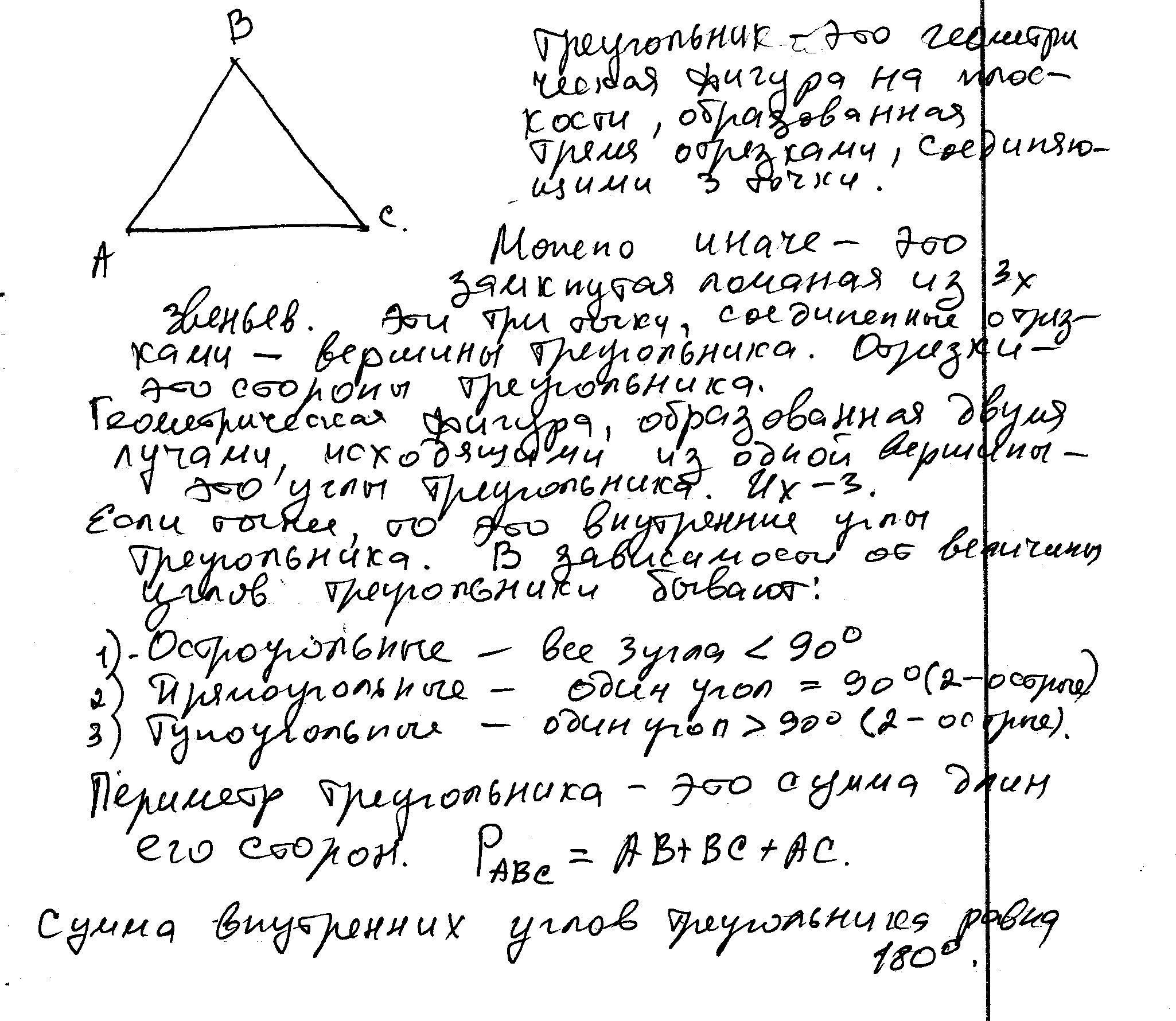 Объясните какая фигура называется треугольником .Начертите треугольник и покажите его стороны ,вершины и углы .Что такое периметр треугольника ?