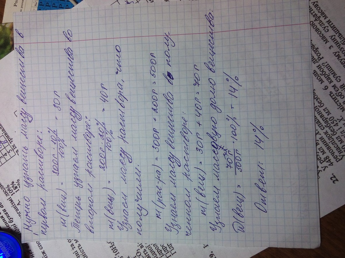 К 300 г. 10% раствора сахара прилили 200 г. 20% раствора сахара. Определите массовую долю вещества в полученном растворе.