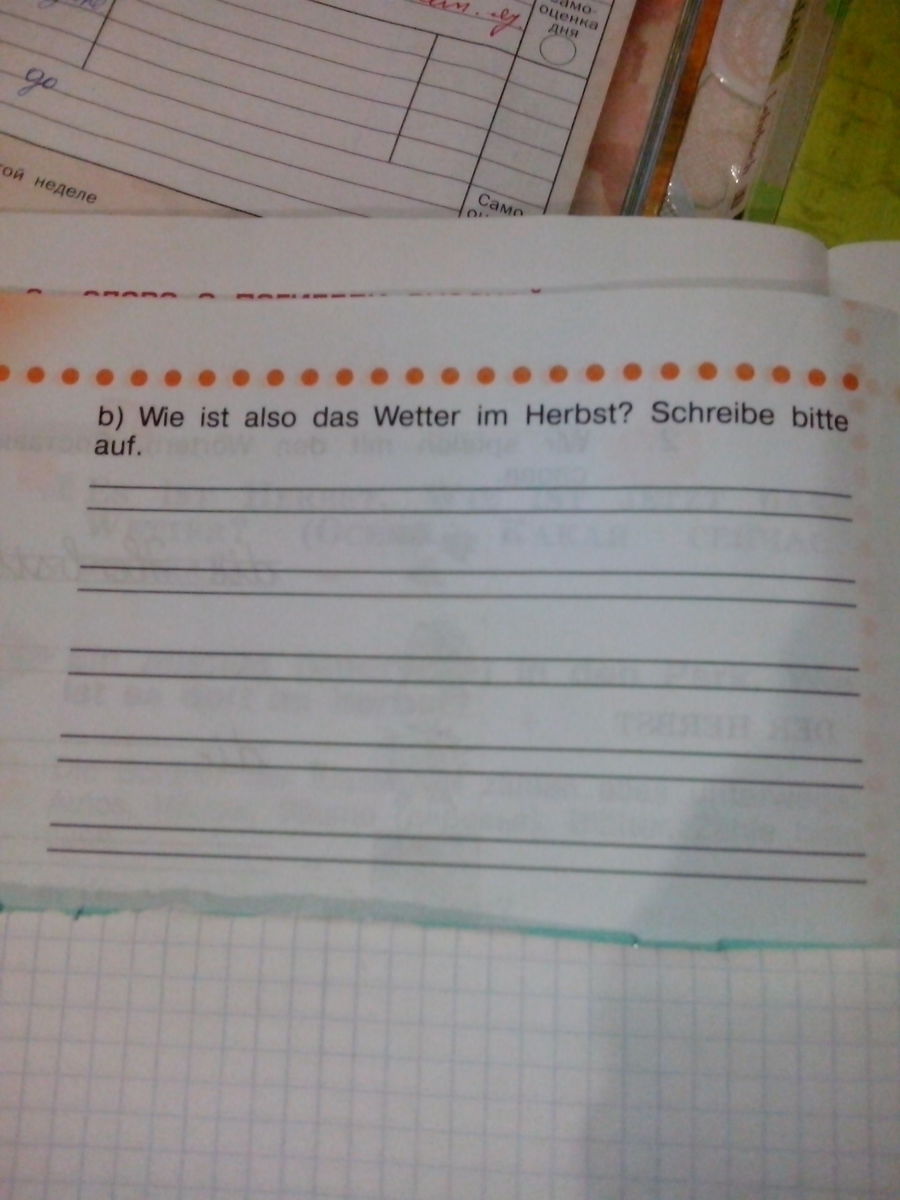 Der Herbst ist da.Der Herbst hat drei Monate:September,Oktober und November.Das Wetter ist im Herbst oft schlecht.Im Herbst regnet es oft.Es ist windig.Die Sonne scheint wenig.Die Luft ist kühl.Bunte Blätter fallen auf die Erde.