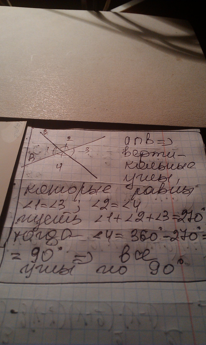 найди углы , которые получаются при пересечении двух прямых, если сумма трех из них этих углов равна 270º