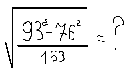 Возводишь все выражение в корень,тогда у тебя убирается корень квадратный. остается 93²-76²=8193 получается дробь 8193/153, и ее упрощаешь
