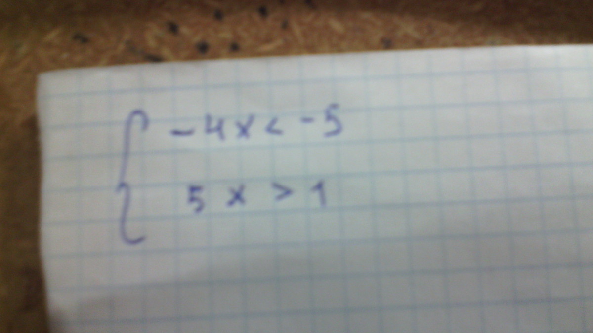 первое уравнение * на-1; 4x>5 и 5x>1; x>5/4 и x>1/5; x>1.25 и x>0.2;отмечаем значения х на коорд. прямой; х є (1,25 ; бесконечность)