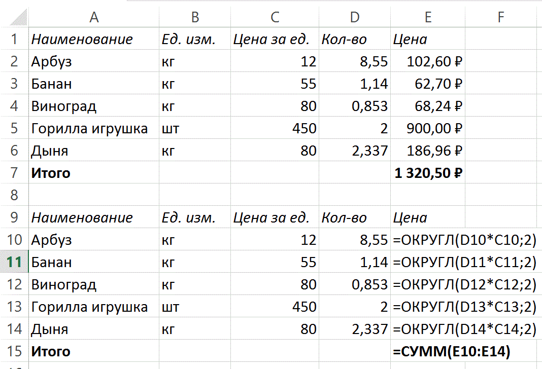 4. Переедет на строку выше (D4), формула СУММ(D2:D3)
