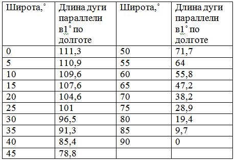 Длина 1 градуса в километрах, Мередиана и паралели?