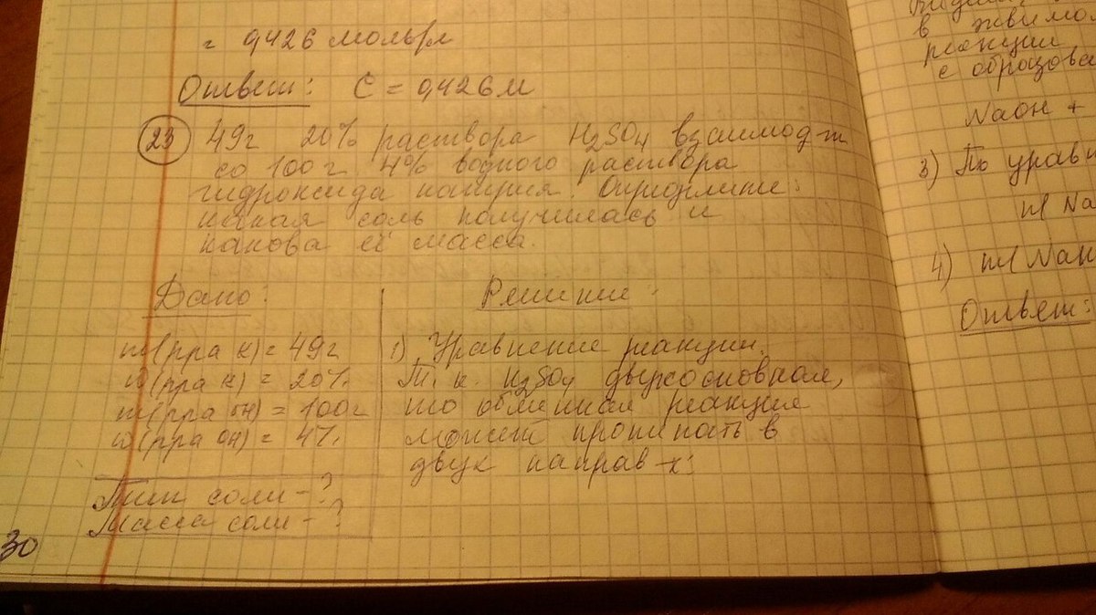49 г 20%-ного раствора серной кислоты взаимодействуют со 100 г 4%-ного раствора гидроксида натрия. Какая соль получилась в результате реакции? Определите ее массу.
