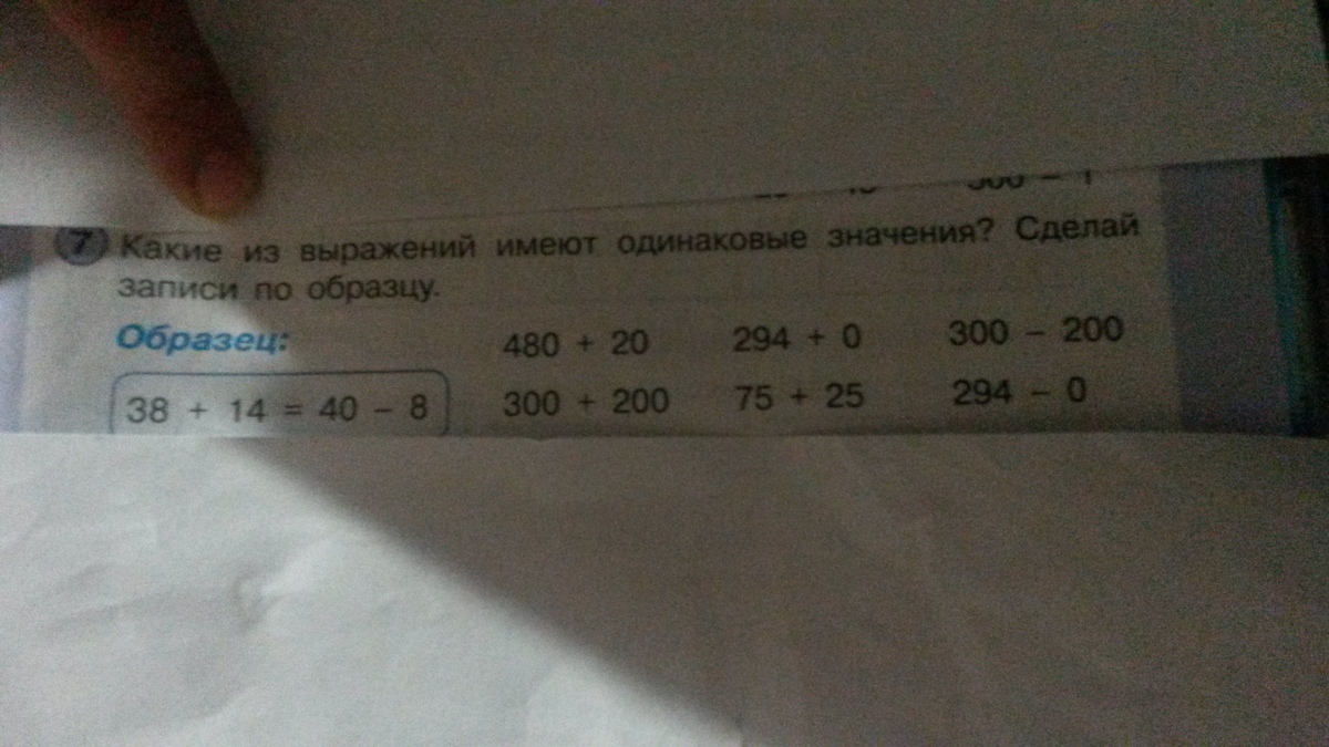 какие из выражений имеют одинаковые значения. сделать записи по образцу: 38+14=40-8.
