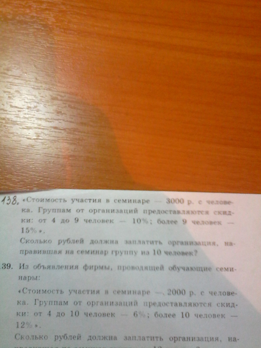 Стоимость участия в семинаре 3000 рублей с человека группам от организаций предоставляются скидки от 4 до 9 десять процентов более девяти 15 процентов сколько рублей должна заплатить организация направивший на семинар группу из 10 человек