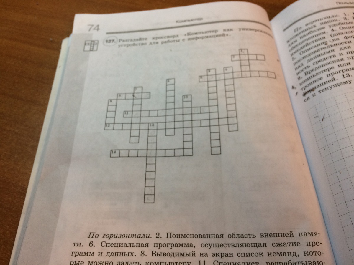 Помогите разгадать кроссворд "Компьютер как универсальное устройство для работы с информации"
