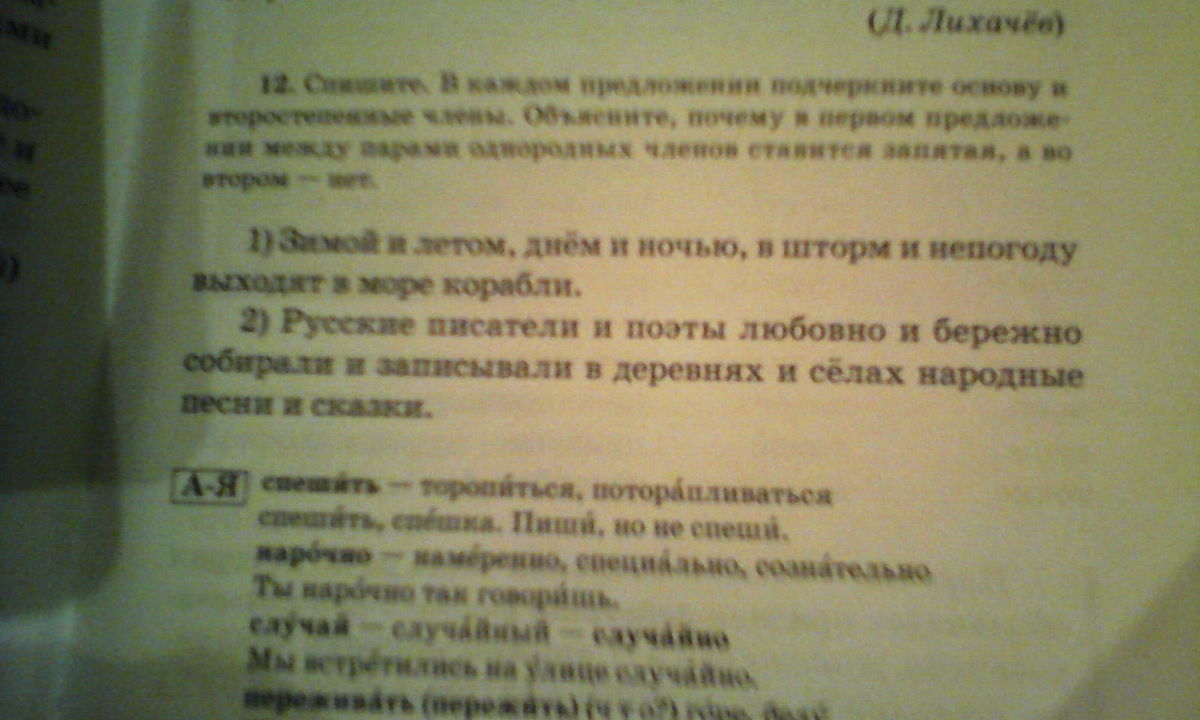 1)зимой и летом нар, днём и ночью нар., в шторм и непогоду обстоятельство В.п., выходят сказуемое, в море обстоятельство В.п., корабли подлежащие И.п.(повество., невоскл., простое, двусост., распр., полное, осложнено однор. Обстоятельством. )