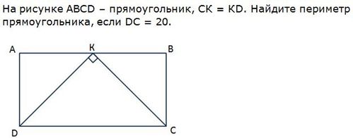 3.авсд- прямоугольник ск=кд. Найдите периметр прямоугольника если дс =20 градусам.