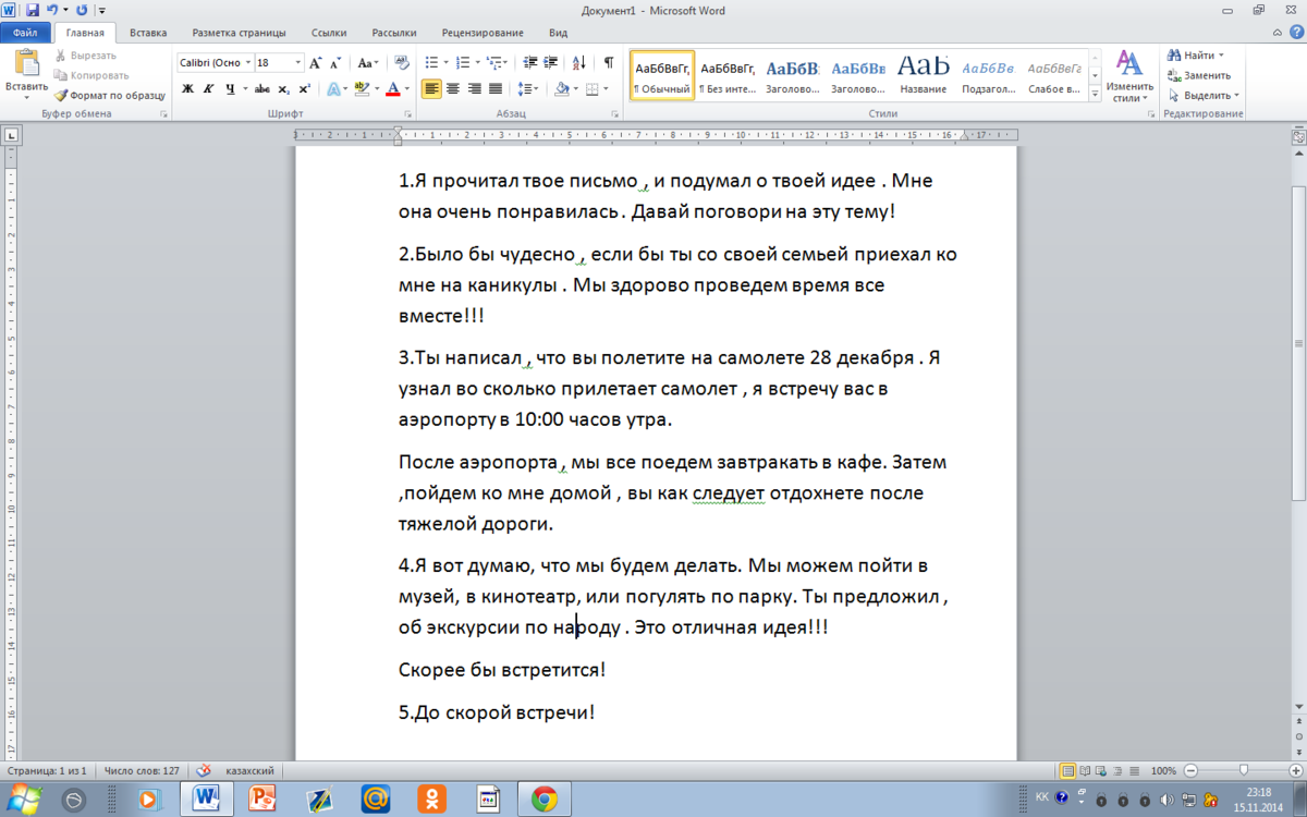 3. You wrote that you are going to fly on a plane on 28 december. I know when the plane arrives, I'll meet you in airport at 10 am.