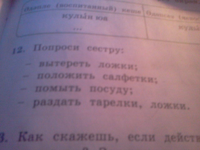 ребята помогите по татарскому номер 12 Как ты по татарски попросишь сестру -вытереть ложки,положить салфетки,помыть посуду,раздать тарелки,ложки