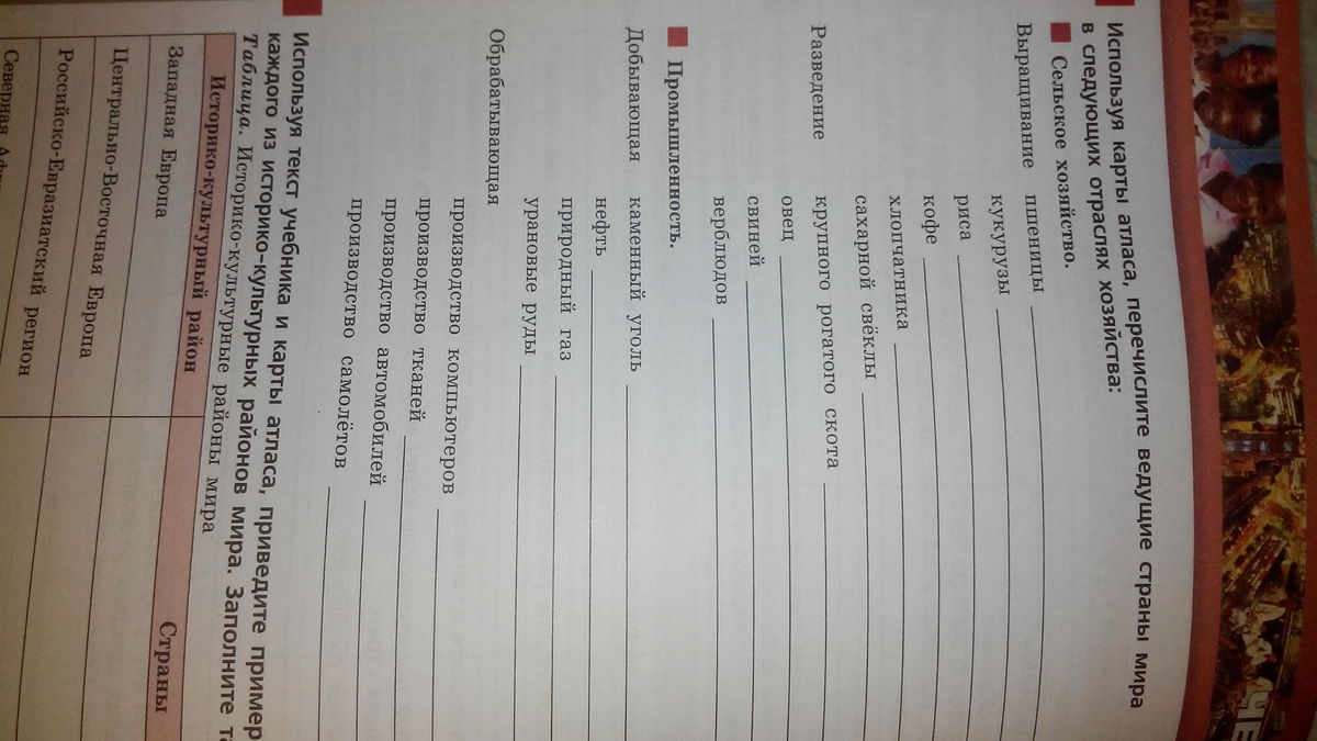 Пшеницы: Китай, Индия, Россия, США, Франция.Кукуруза: США, Китай, Бразилия, Мексика, Франция.Рис: Китай, Индия, Индонезия, Бангладеш, Вьетнам. Разведение Крупный рогатый скот: Индия, Бразилия, США, Китай, Аргентина.Овцы: Китай, Австралия. Индия, Иран, Судан.Свиньи: Китай, США, Испания, Германия, Бразилия.Верблюды: Египет, Турция, Марокко. Промышленность. ДобывающаяКаменный уголь: Китай, США, Индия, Австралия, Россия, Индонезия, Германия, Польша, Казахстан.