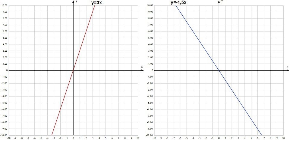 , следовательно, данные прямые пересекают ось у в начале координат.
