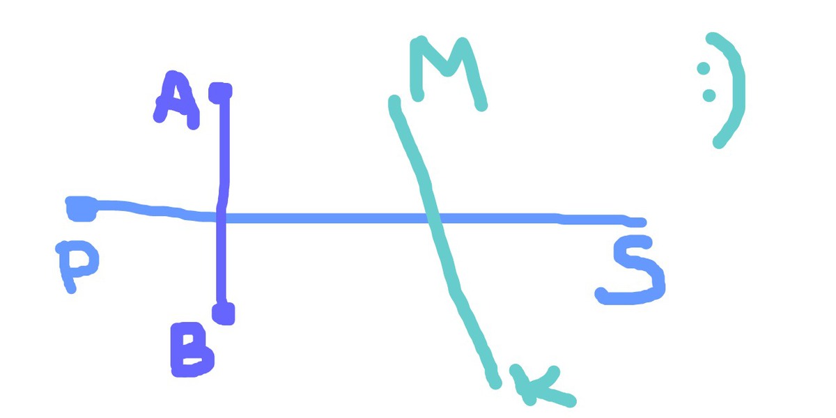 Проведите прямую MK, лучPS и отрезок AB так чтобы луч PS пересекал отрезок AB и прямую MK, а прямая MK не пересекала отрезок AB