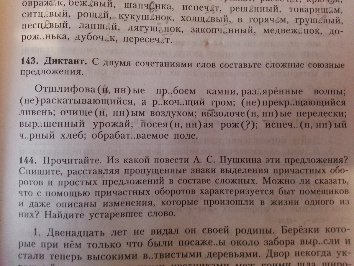 Отшлифованные прибоем камни, разъярённые волны; не раскатывающийся, а рокочущий гром; непрекращающийся ливень; очищенные воздухом; вызолоченные перелески; намагничиваемый металл; выращенный урожай; посеянная рожь; испеченный черный хлеб; обрабатываемое поле.