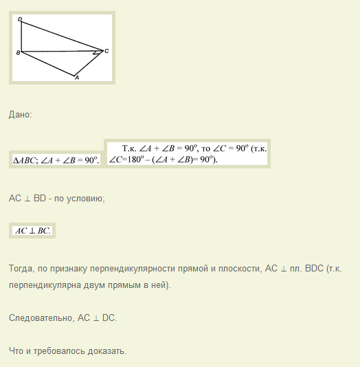 в треугольнике АВС сумма углов А и В равна 90 градусов. Прямая ВД перпендикулярна к плоскости АВС. Докажите, что СД перпендикулярна АС