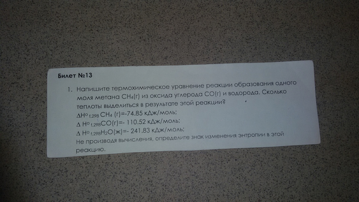 CO(г) + 3H2 (г)= CH4(г) + H2O(ж)