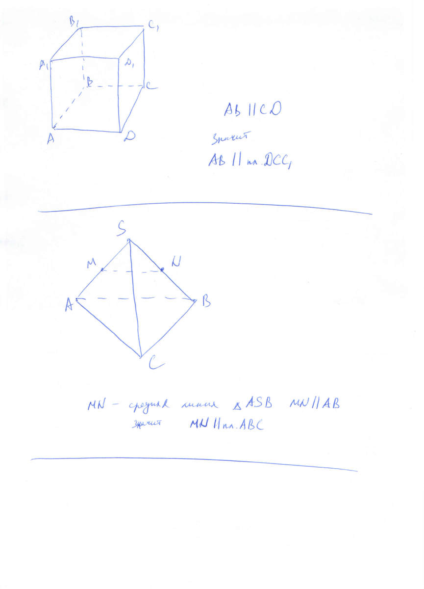 Если прямая, не лежащая в данной плоскости, параллельна какой-нибудь прямой, лежащей в этой плоскости, то она параллельна самой плоскости.