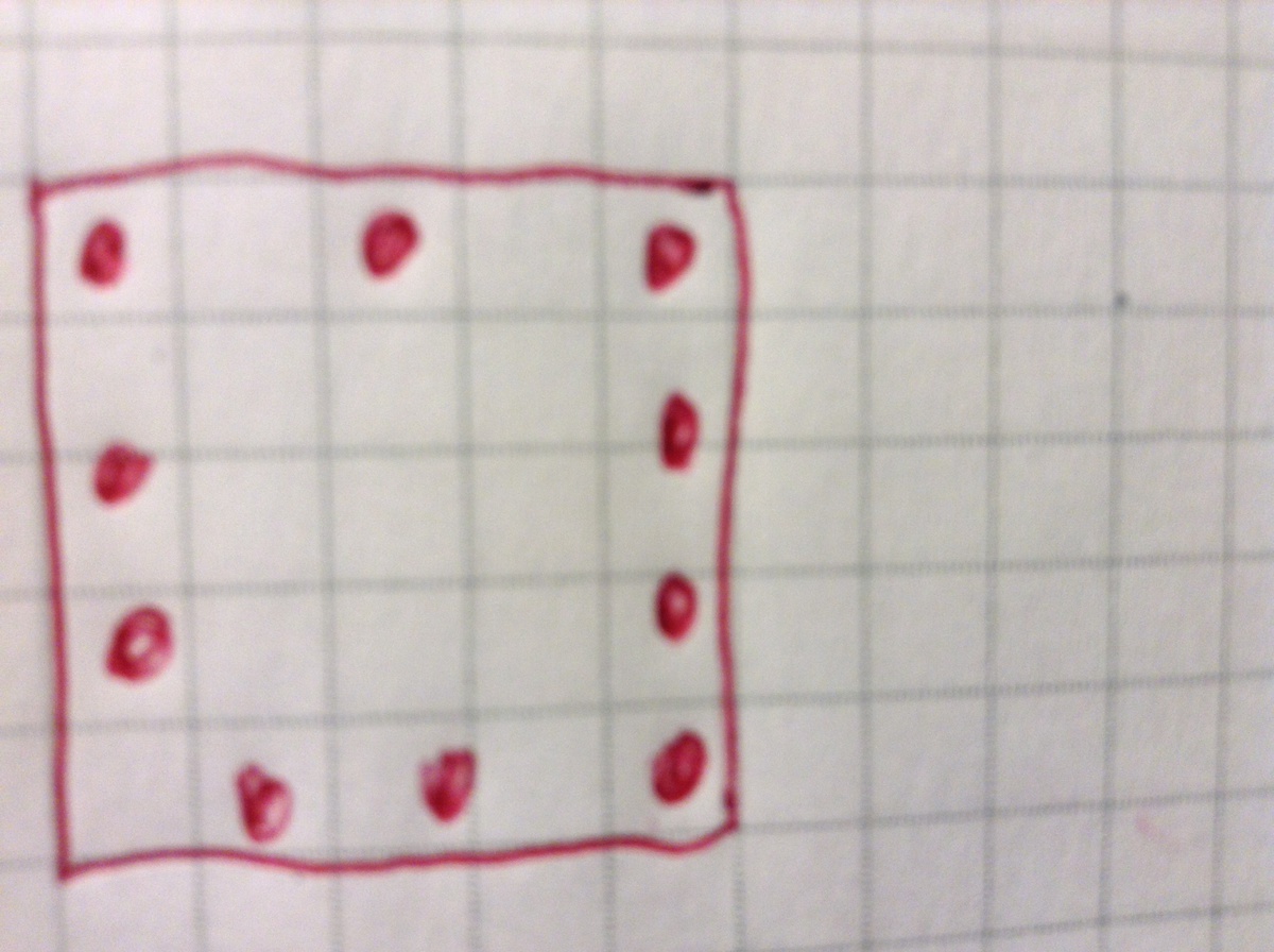 Комната имеет форму квадрата вдоль стен нужно расставить 10 таблеток так чтобы количество табуреток стоящих вдоль каждой стены было одинаковое нарисуйте как это сделать
