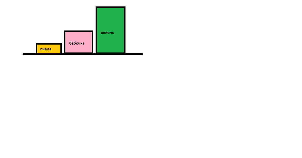 На диаграмме 10 цветов-1 см, рисуйте с линейкой , а то я на глазок делала. Пчела 1см в высоту, бабочка-2,6см, шмель-4см