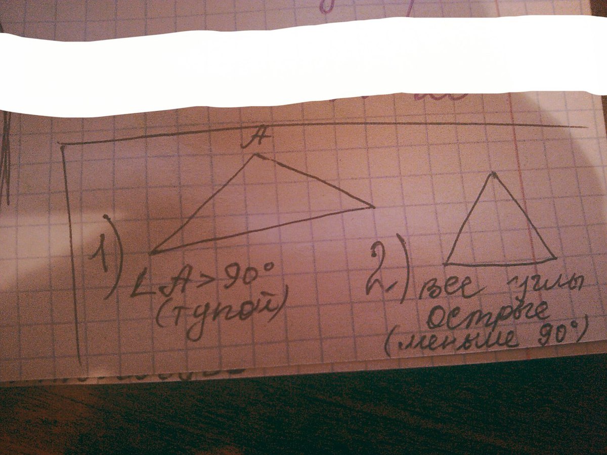 начертите по клеточкам треугольник у которого есть тупой угол,и треугольник,у которого все углы острые