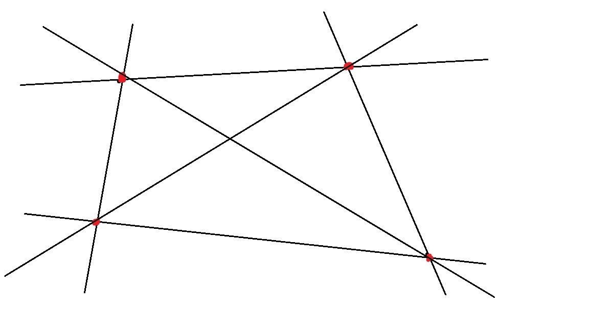 Если никакие 3 точки не лежат на одной прямой, то получится выпуклый четырехугольник. Через 4 точки которого можно провести 6 прямых.
