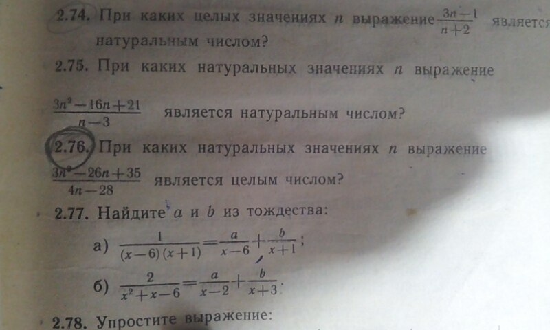 (3n²-26n+35)/(4n-28)=(3n-5)(n-7)/4(n-7)=(3n-5)/4