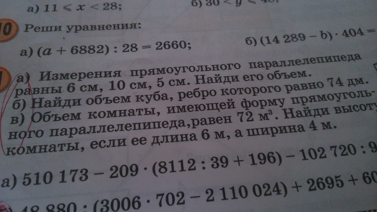 а) V=a*b*c=6*10*5= 300 м³