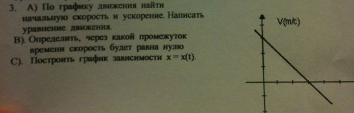 А)по графику движения(ВЛОЖЕН) найти начальную скорость и ускорение.постоить график зависимости