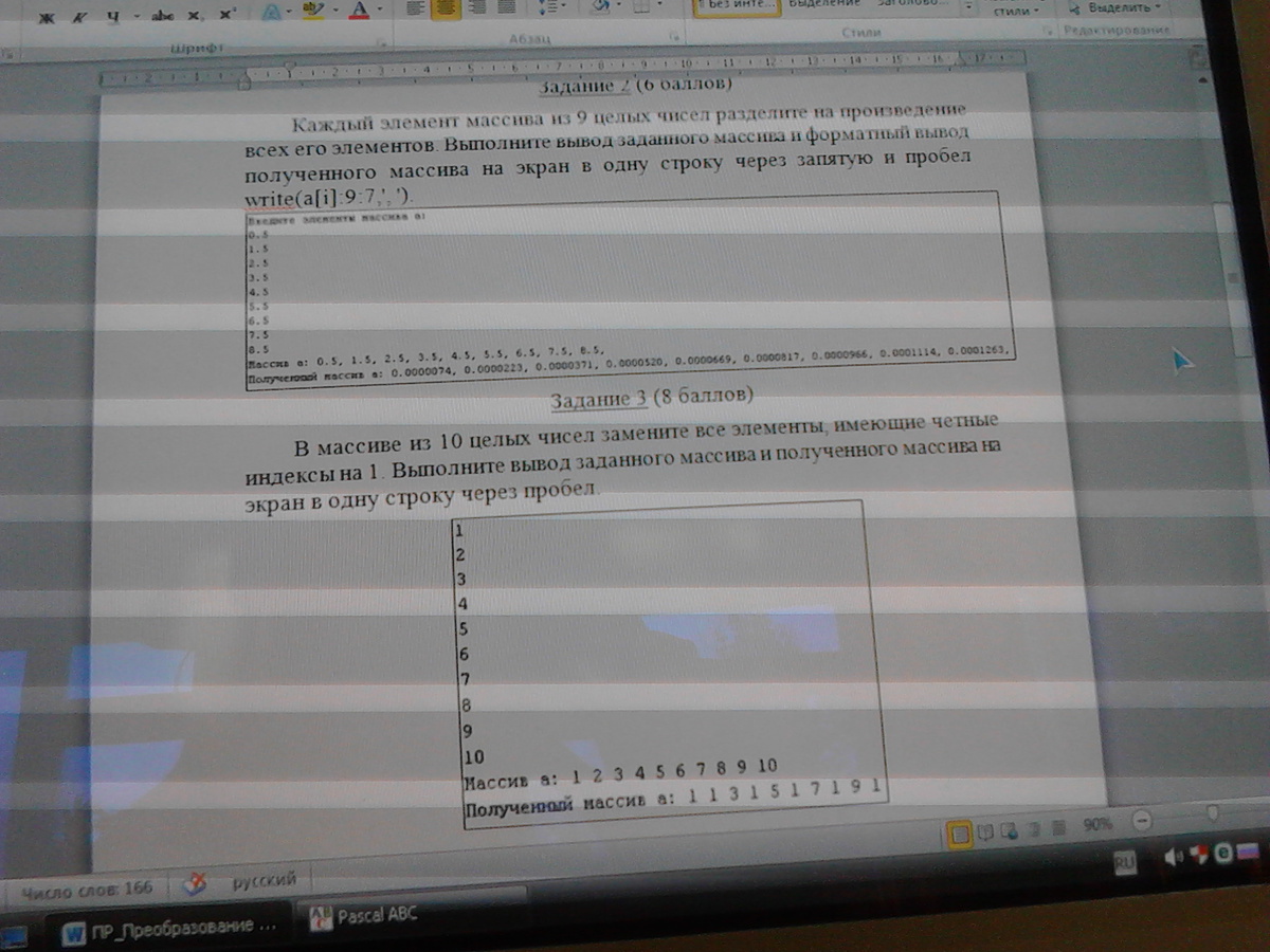 for i:=1 to 9 do write (a[i]:9:7,', ') //Выводим полученный массив