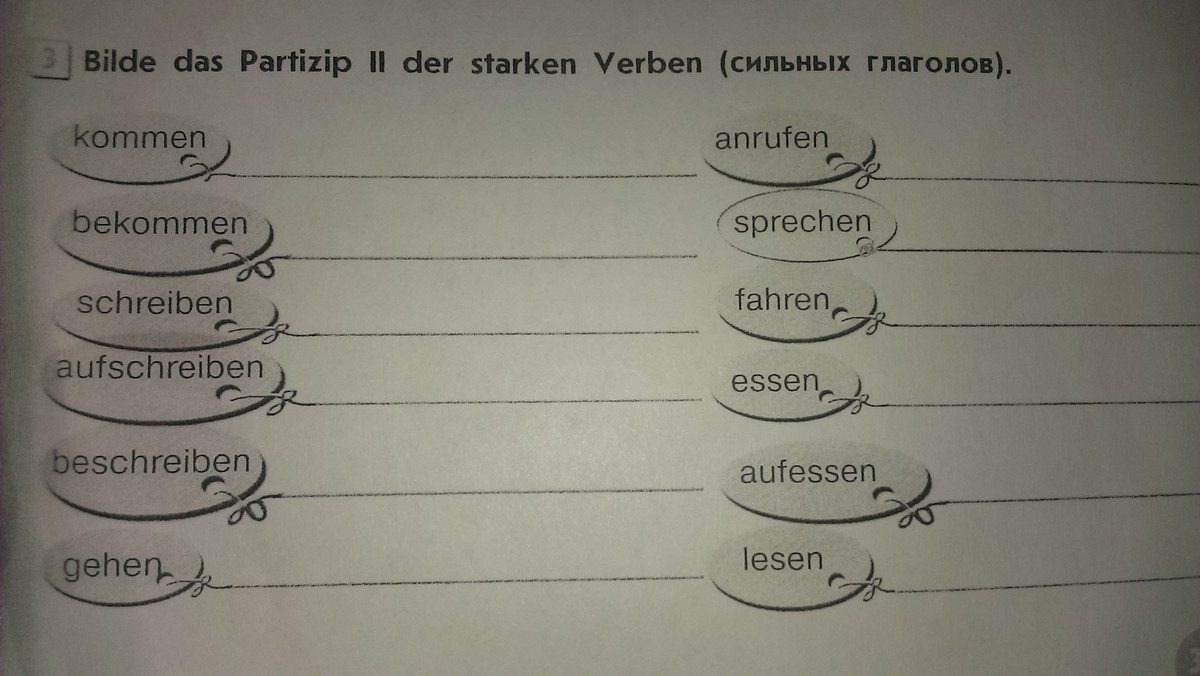 kommen- gekommem.bekommem-bekommen schreiben geschriben aufschreiben-aufgeschriben.beschreiben -beschrieben gehen gegangen.anrifen-angerufen?sprechen -gesprochen.fahren-gefahren.essen -gegessen-aufessen-aufgegessen lesen-gelesen