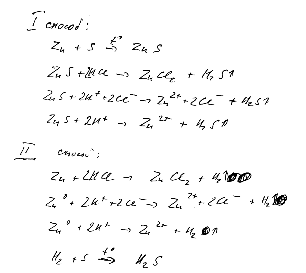 Какими двумя способами можно получить сероводородную имея серу, цинк и соляную кислоту ? Напишите реакции в молекулярной, полной ионной и сокращенной ионной формах.