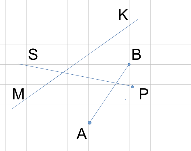 проведите прямую МК луч РS и отрезок AB так чтобы луч PS пересекал отрезок AB и прямую MK не пересекала отрезок AB.