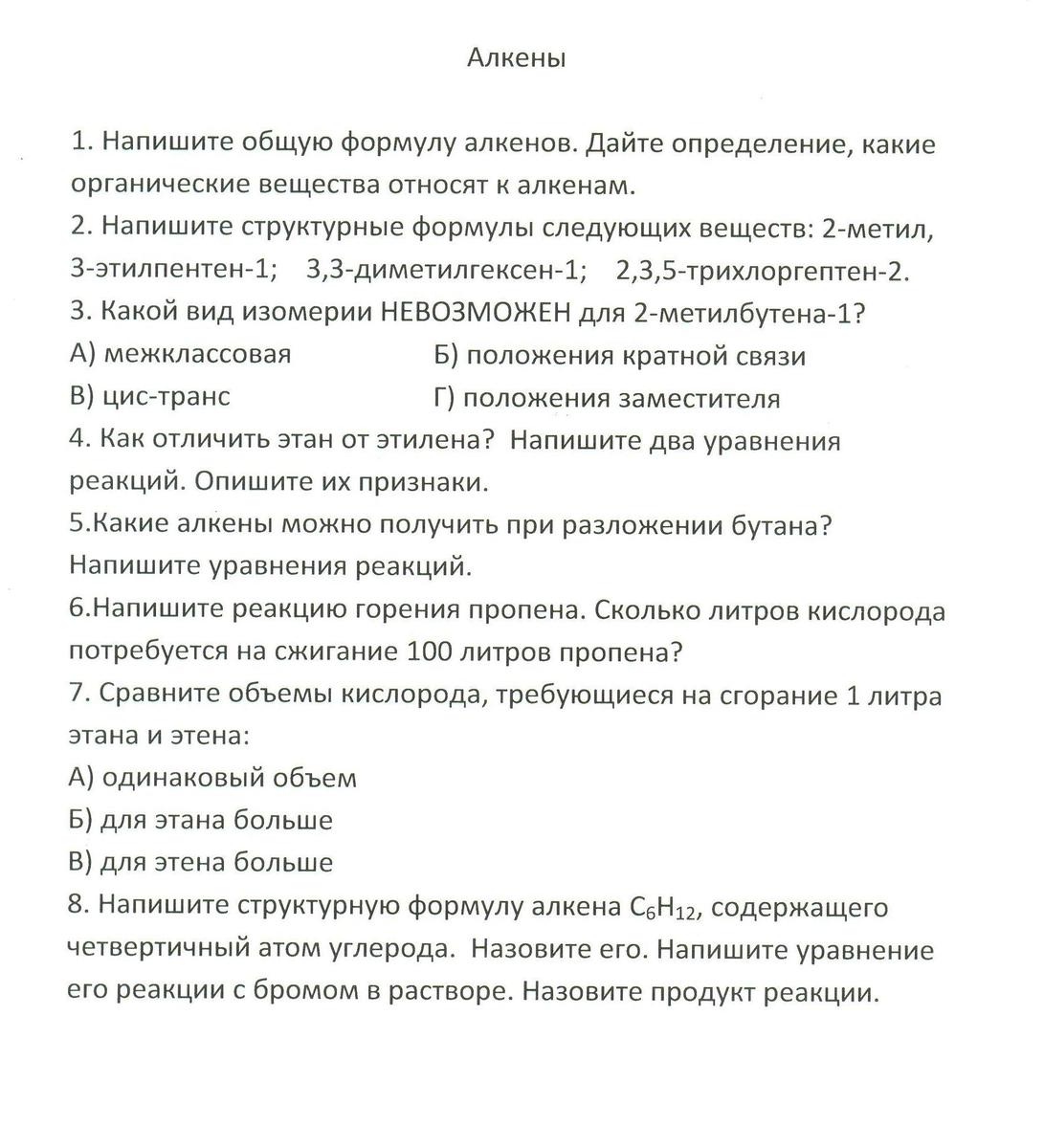 Алкены:это вещества содержащие в своем составе одну двойную углерод-углеродную связь