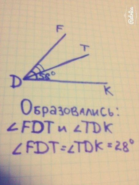 Как то так) Но FDT и TDK будут равны по 28 градусов, только если ты проведёшь этот луч ровно посередине угла FDК, как я показала на рисунке. удачи тебе)