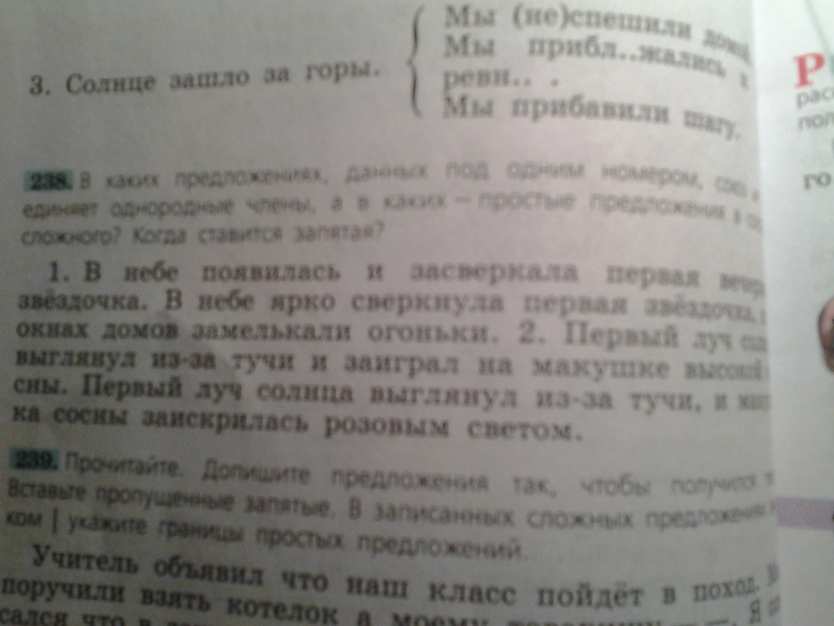 В небе ярко сверкнула первая звездочка, и в окнах домов засверкали огоньки. Первый луч солнца выглянул из - за тучи, и верхушка сосны заискрилась розовым светом .Сложносочиненное предл. с двумя грамматическими основами. Запятая нужна.