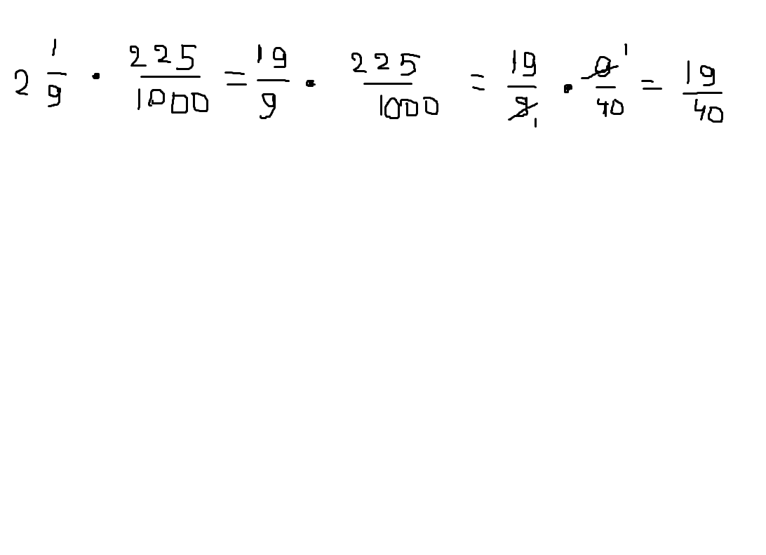 2 1/9*0,225=19/9*225/1000=19/9*9/40=19/40