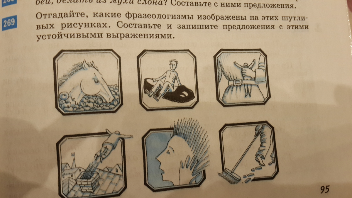 конь в яблоках, сесть в галошу, заткнуть за пояс, вылететь в трубу, волосы дыбом встали, замести следы.