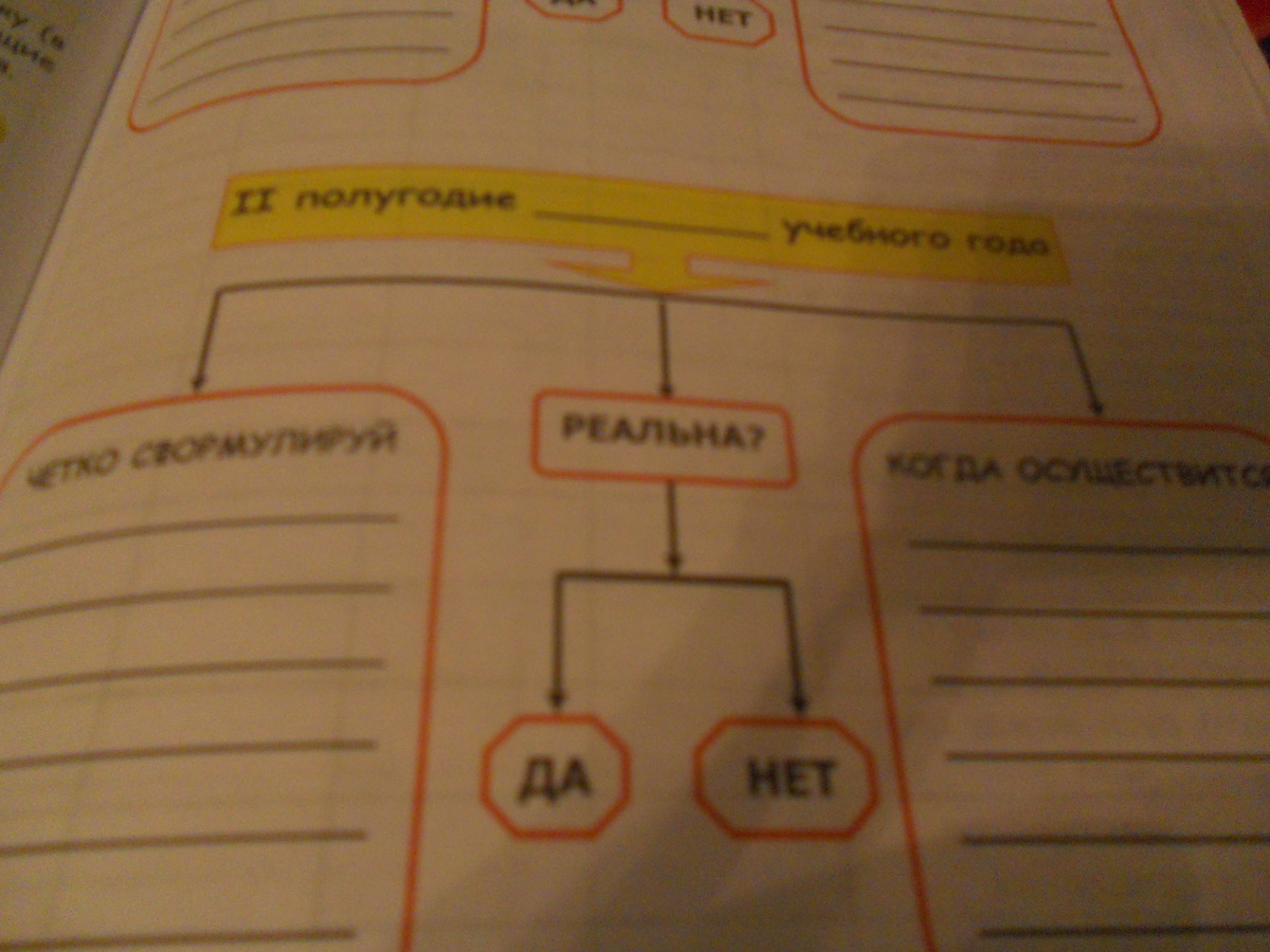 Мои цели на учебный год 1 полугодие.....учебного года чётко сформулируй,когда осуществится,реальна(да.нет?) 2полугодие......учебного года чётко сформулируй,когда осущетвится.реальна(да.нет?)