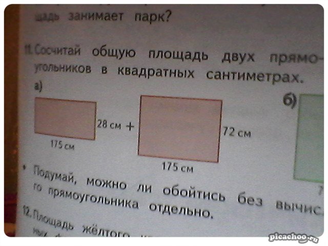 Сосчитай общую площадь двух прямоугольников в квадратных сантиметров