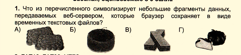 правильно - cookies - так называются эти временные файлы, а cookies в переводе на русский значит печенье - ответ А