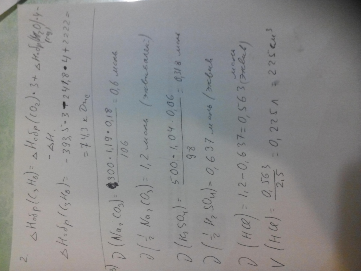 2. Реакция горения пропана C3H8 + 5O2 = 3CO2 + 4H2O. (дельта)Hреакции = -2222 кДж. вычислите (дельта)H образования пропана.