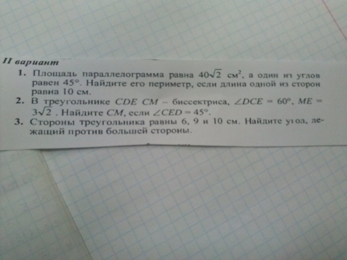 найдем большую сторону по теореме косинусов .пусть угол проти стороны 10 будет α. тогда имеем 10²=6²+9²-2×6×9×косинусα, тогда α=арккосинус17÷108